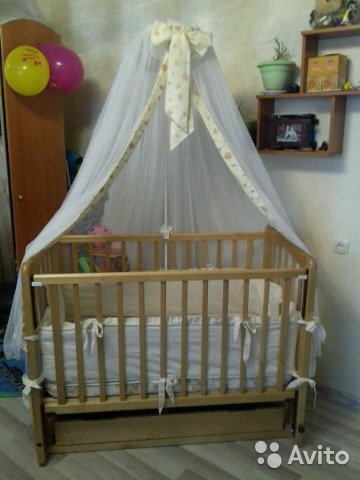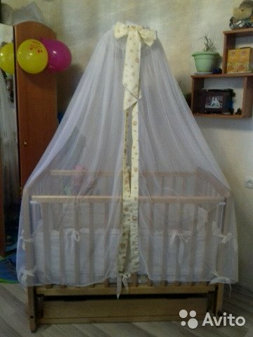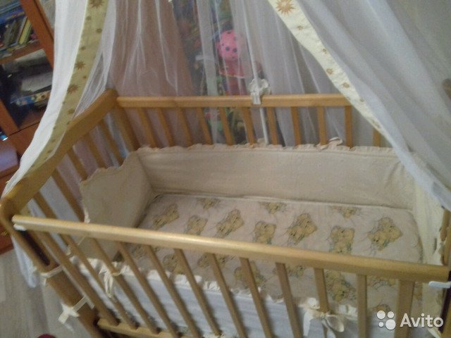 Кроватка детская деревянная с маятником (фиксируется ), выдвижной ящик ,дно регулируется на 3 положения. Не погрызана, без царапин. Отдам с матрасом, бортиками и балдахином. Состояние отличное . Небольшой торг при осмотре . Находимся на висиме.